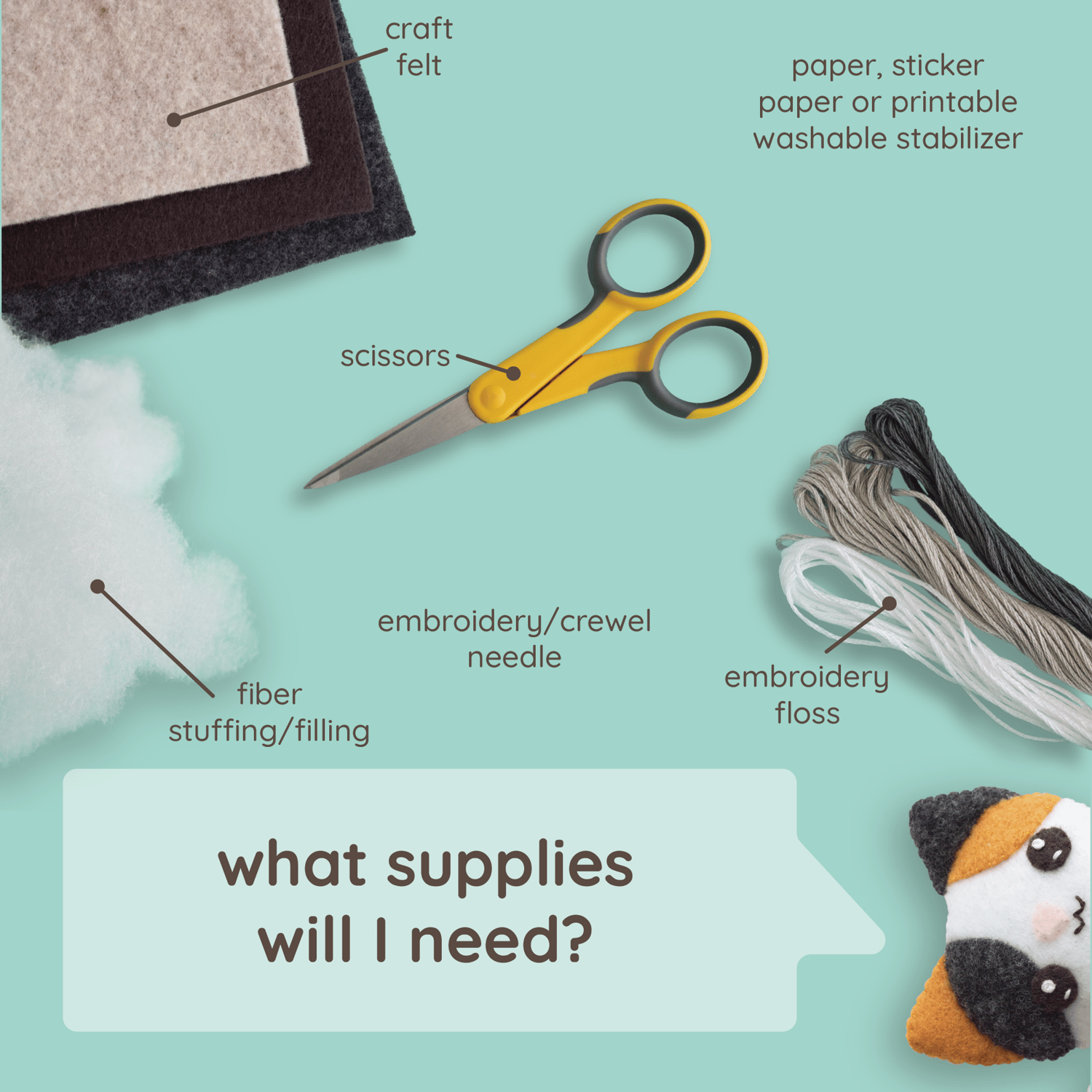 SKILLS USED: Appliqué stitch, whipstitch, straight stitch, french knot.